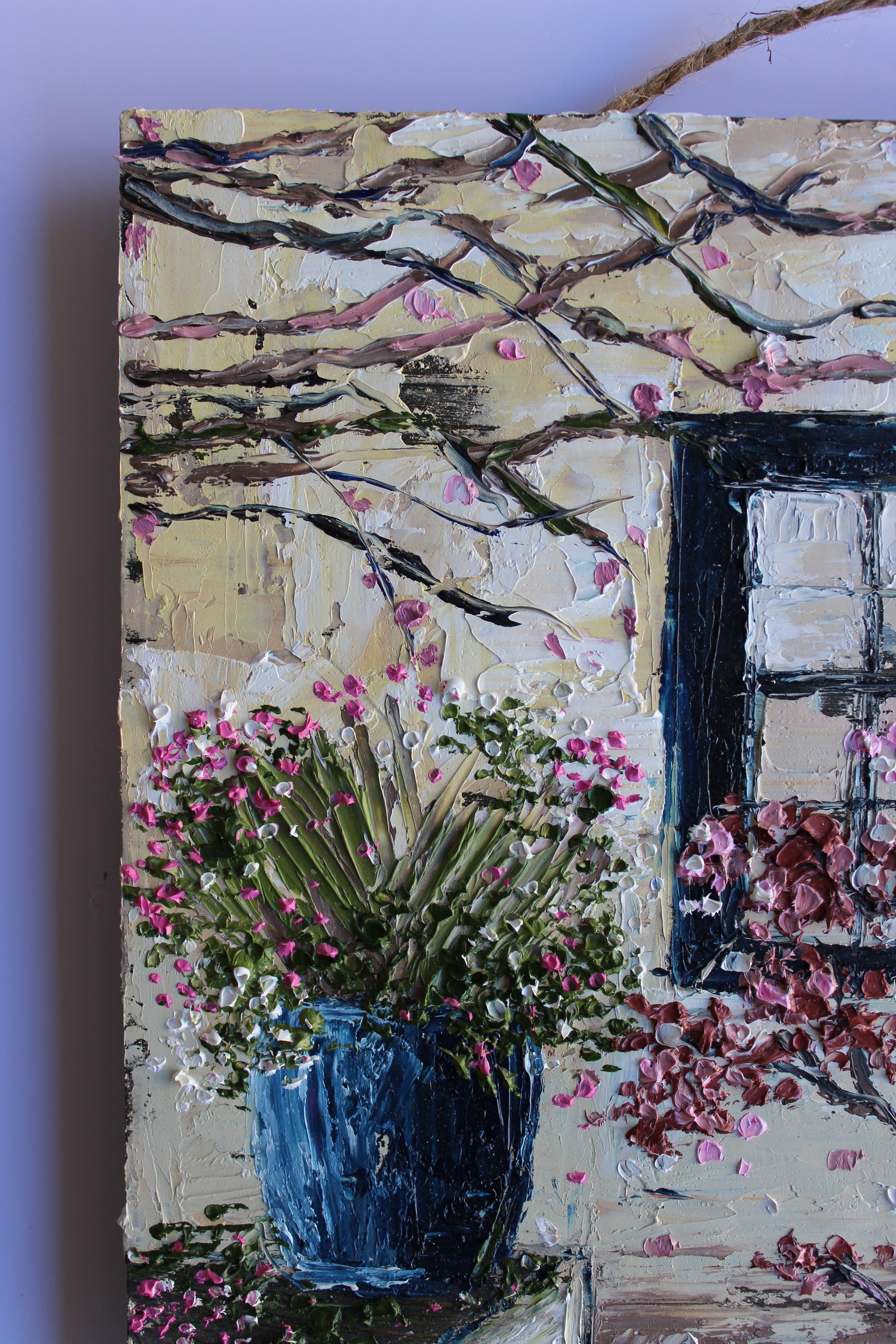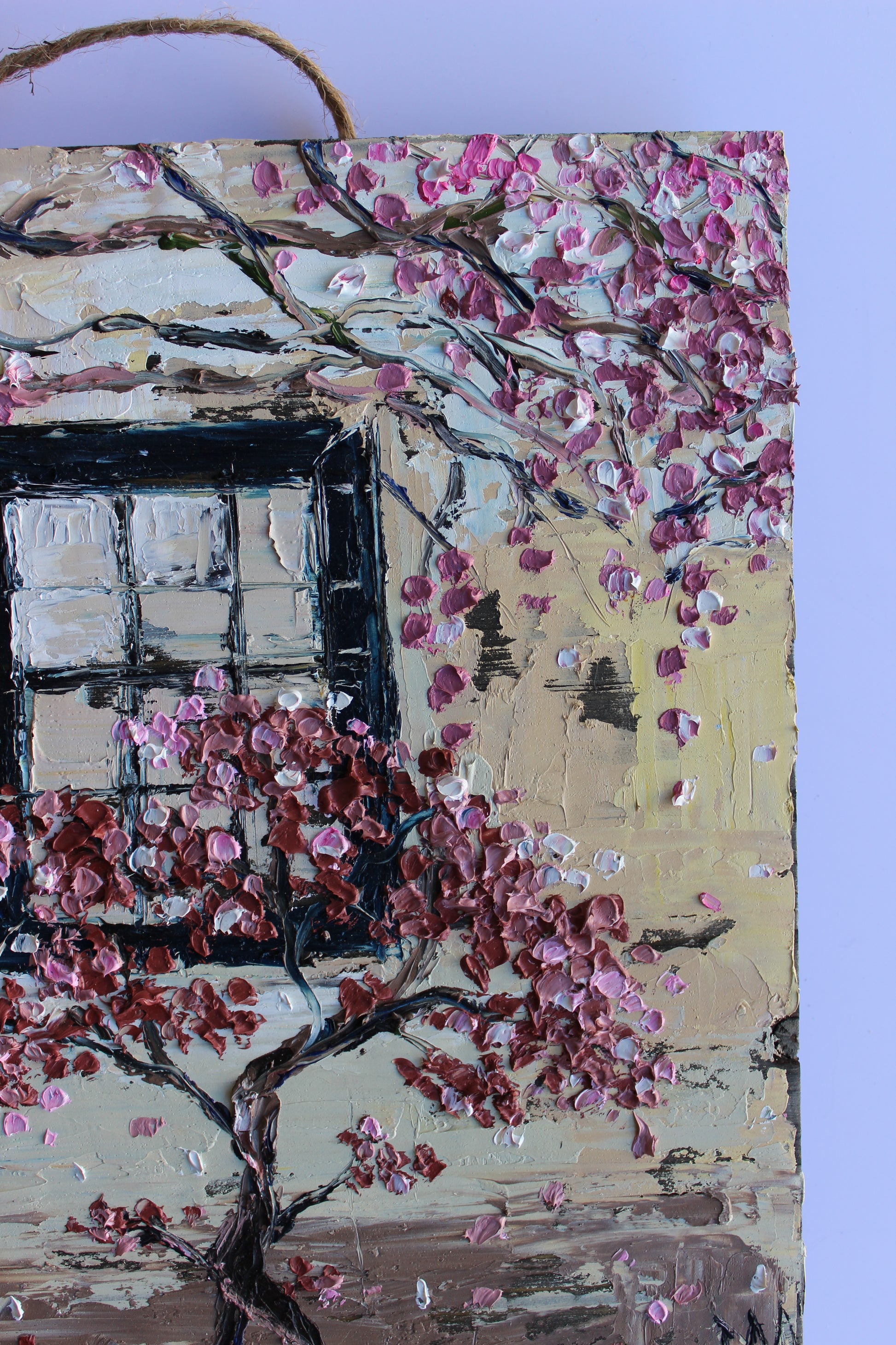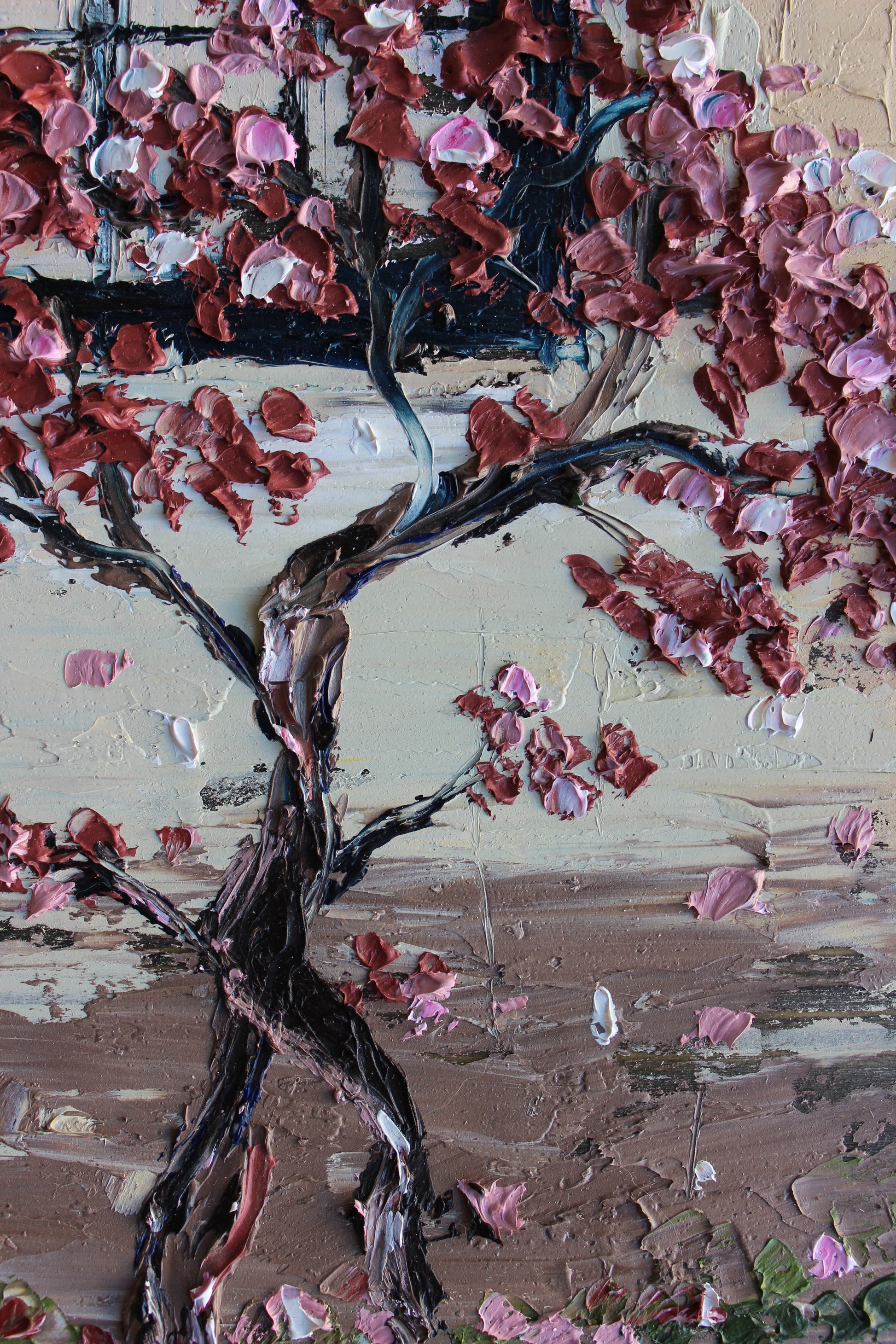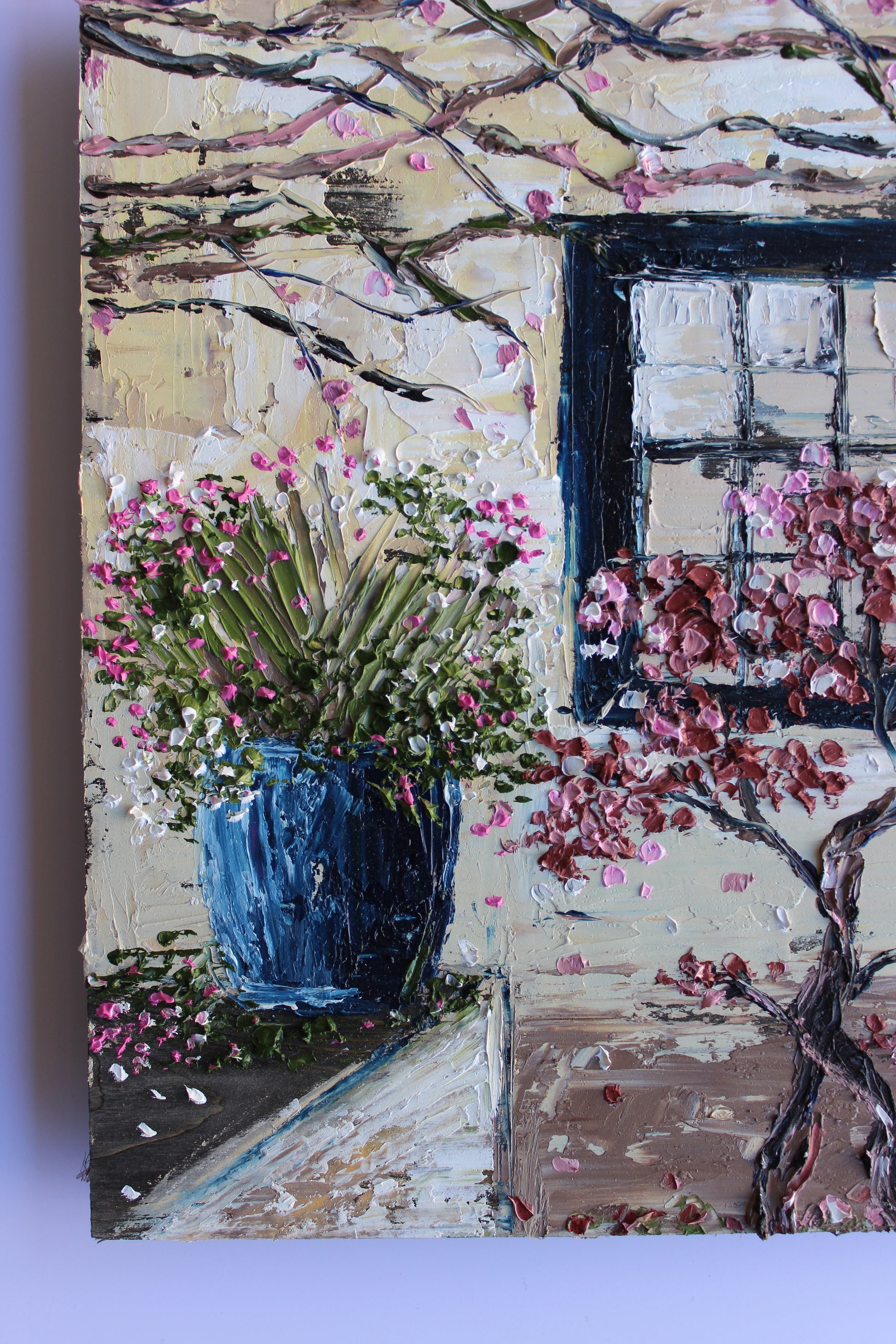 This piece has several layers of paint creating thick luxurious textures, in a beautiful color combination.