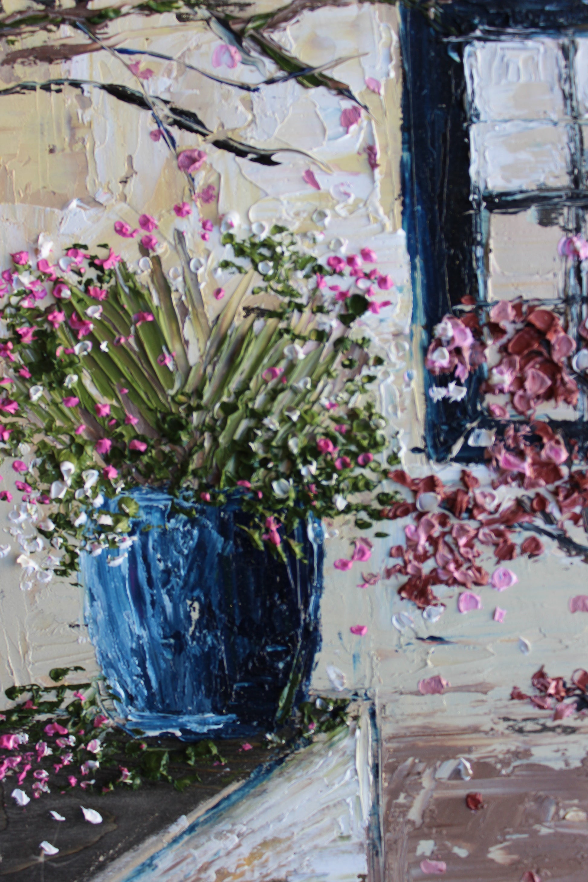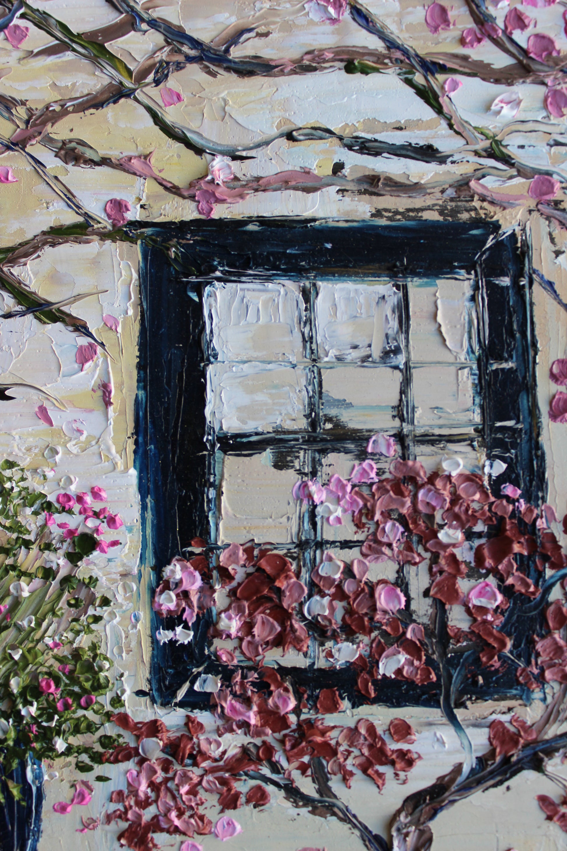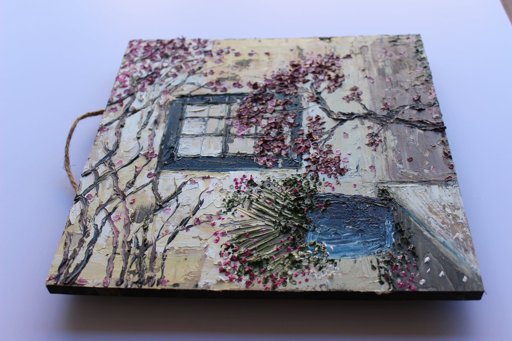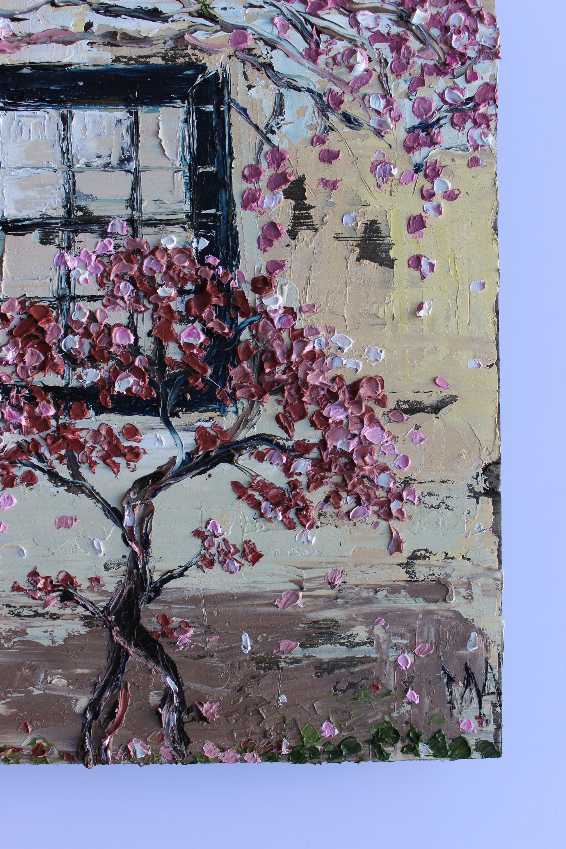 This piece has several layers of paint creating thick luxurious textures, in a beautiful color combination.
