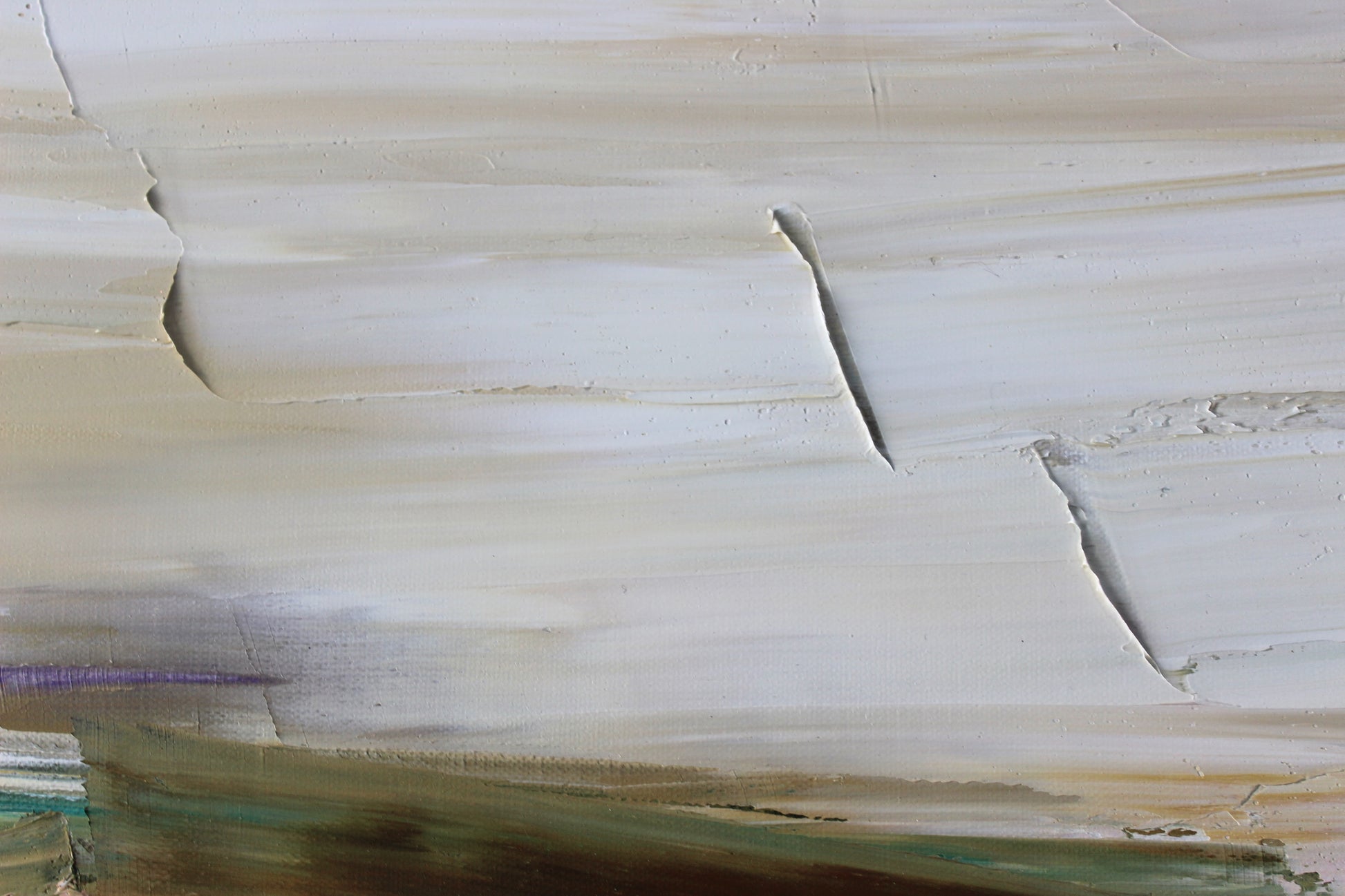 "Chasing Freedom" was inspired by my journeys along the coastal regions in SoCal. This beautiful soothing painting is a highly textured palette knife oil painting on gallery wrapped canvas, it captures the untamed ruggedness of the Pacific Ocean in a beautiful color combination.