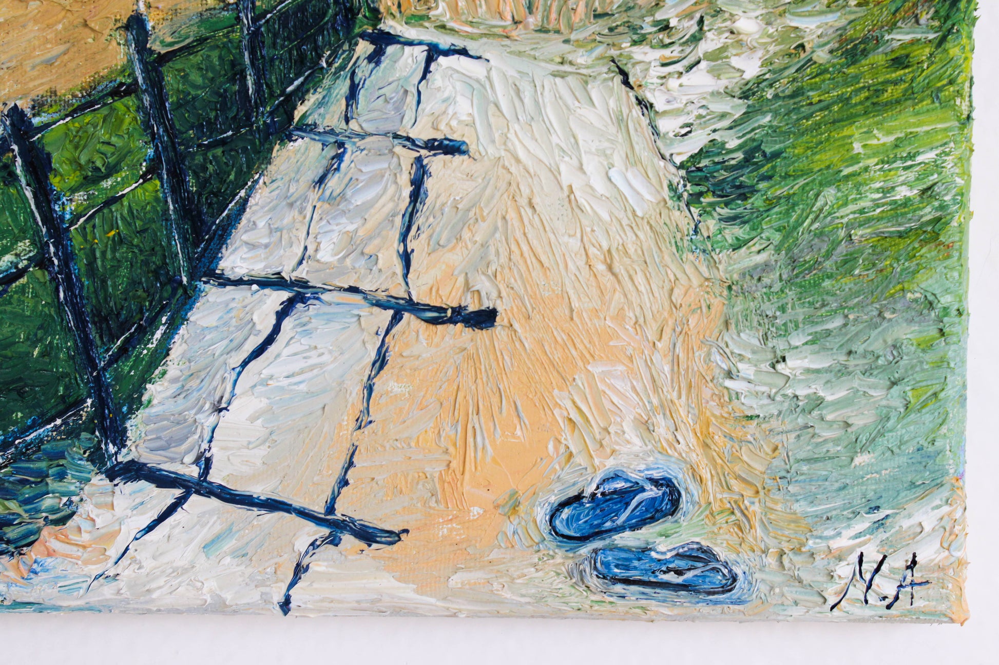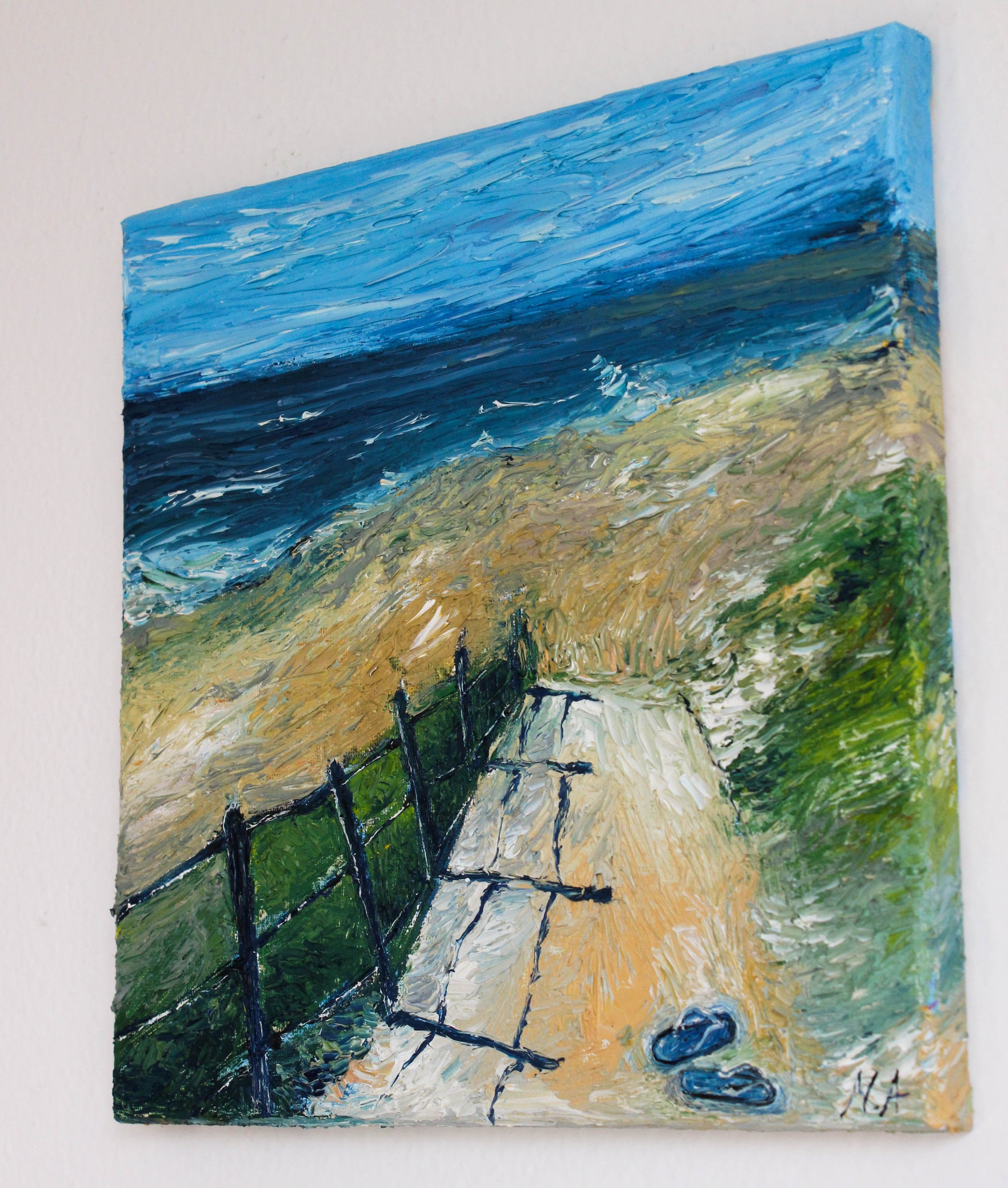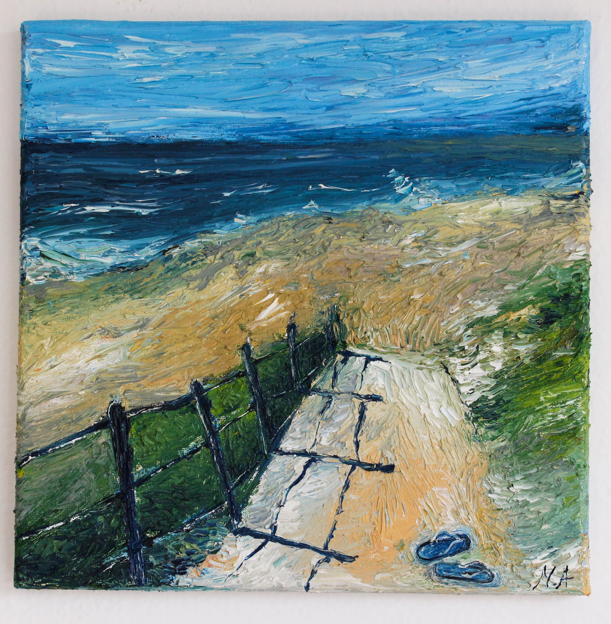 A palette knife painting in oil, featuring a beautiful view of " Crystal Cove National Park" located in SoCal.