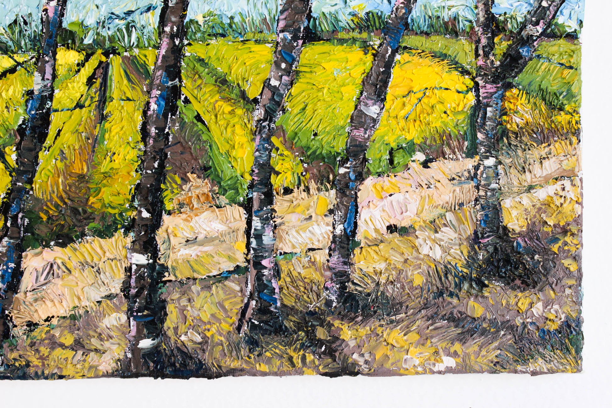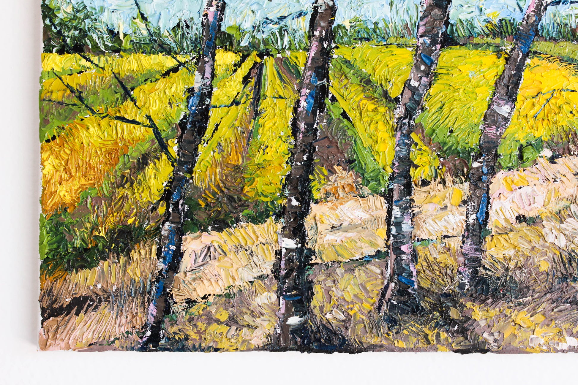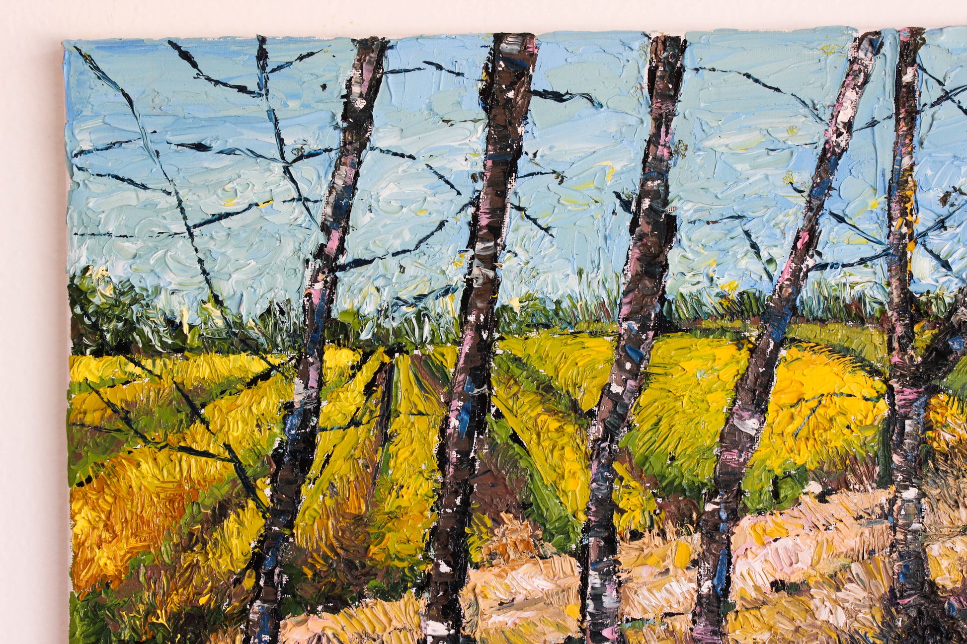 A textured palette knife oil painting, featuring a vibrant "Napa Valley" fall inspired painting.