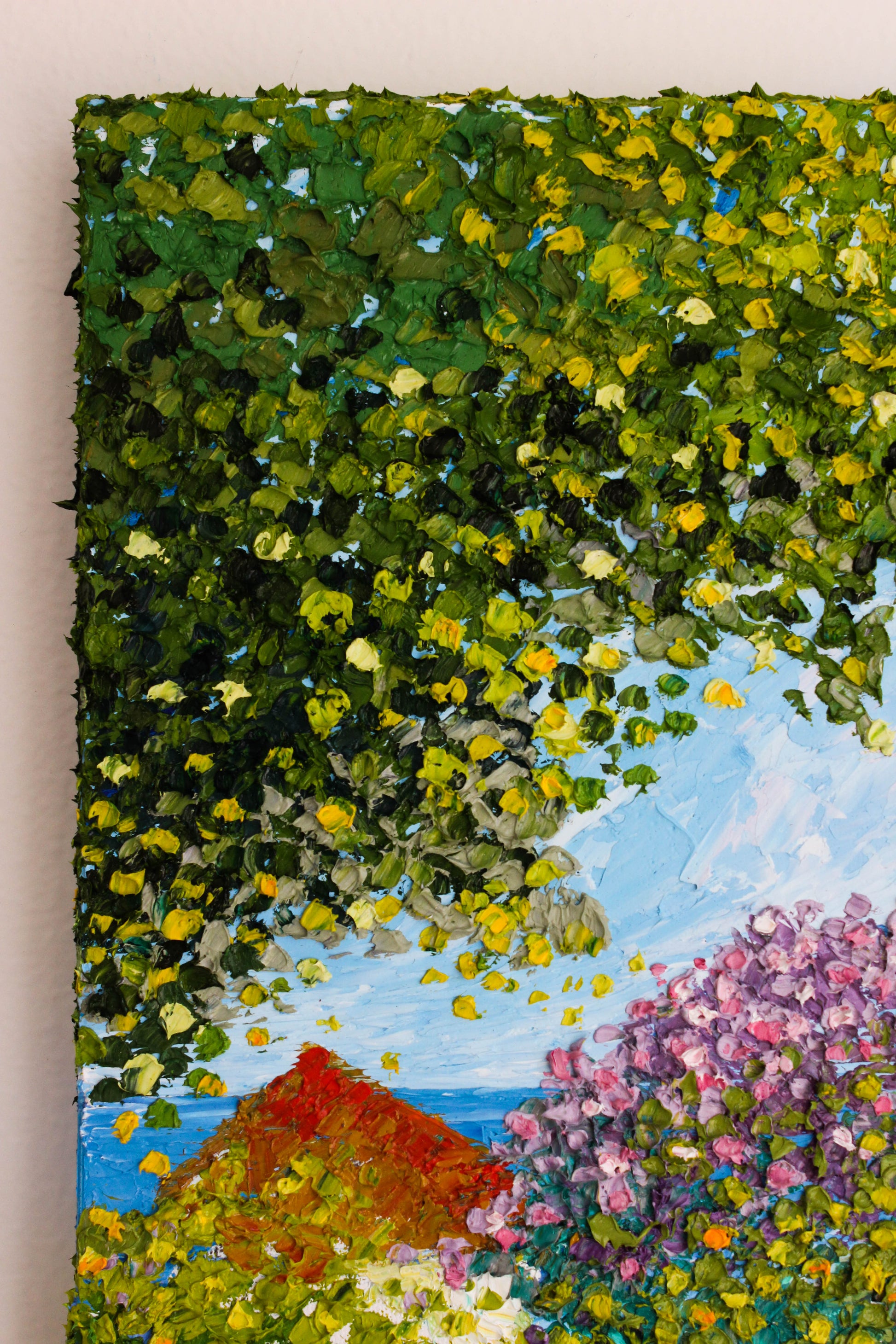 An original and unique high textured palette knife oil painting, featuring a beautiful landscape inspired by the fascinating views in SoCal. This piece has several layers of paint, creating thick luxurious textures that are visible to the eye.