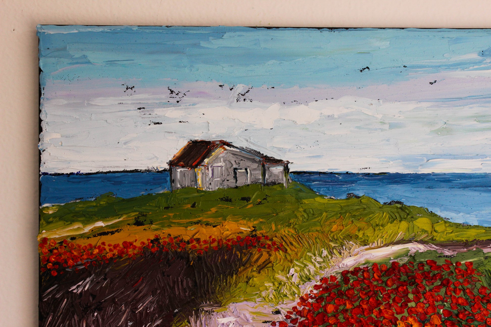 An original and unique high textured palette knife oil painting, featuring a beautiful landscape inspired by the fascinating sceneries in SoCal. This piece has several layers of paint, creating thick, luxurious textures in a beautiful, vivid color combination.