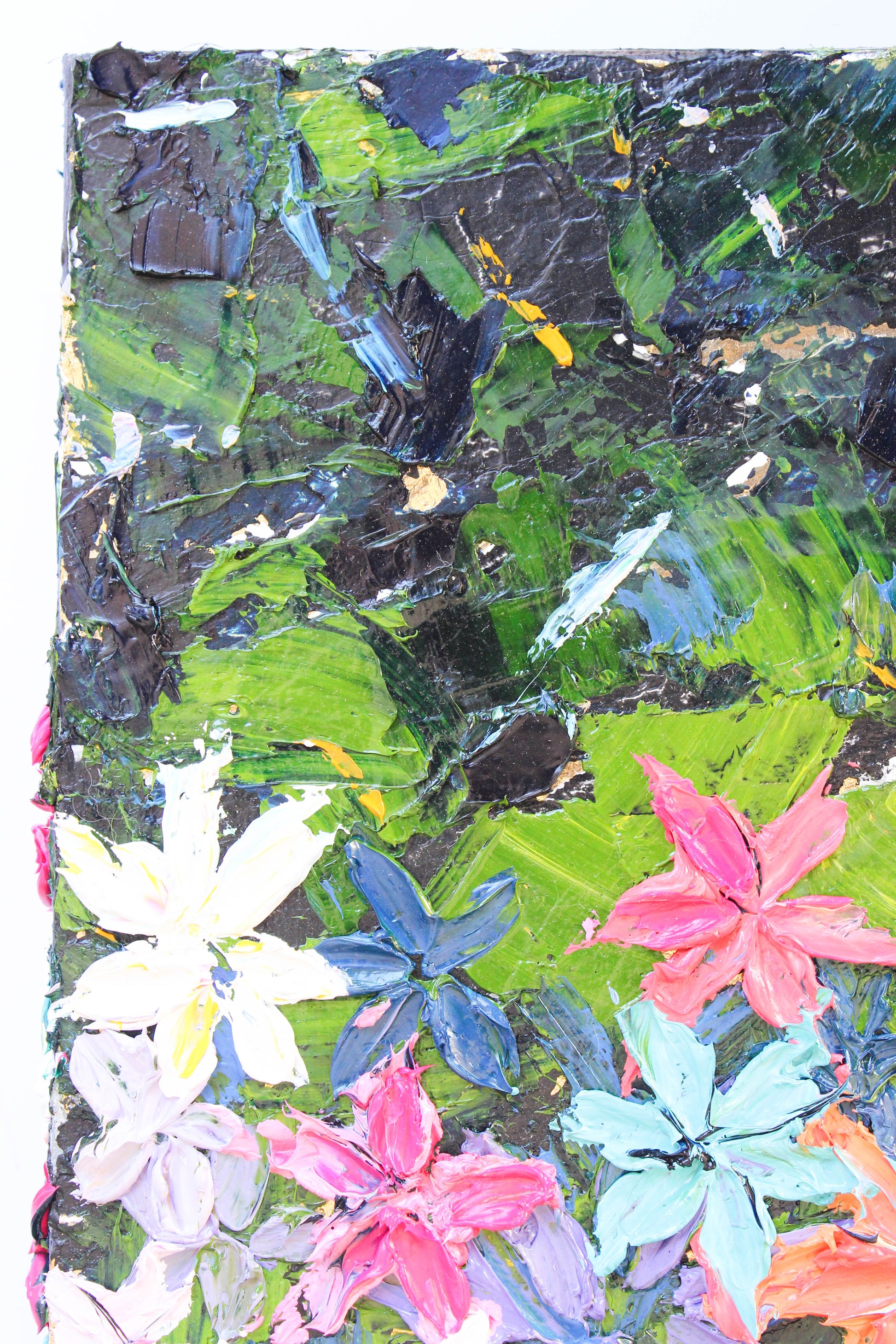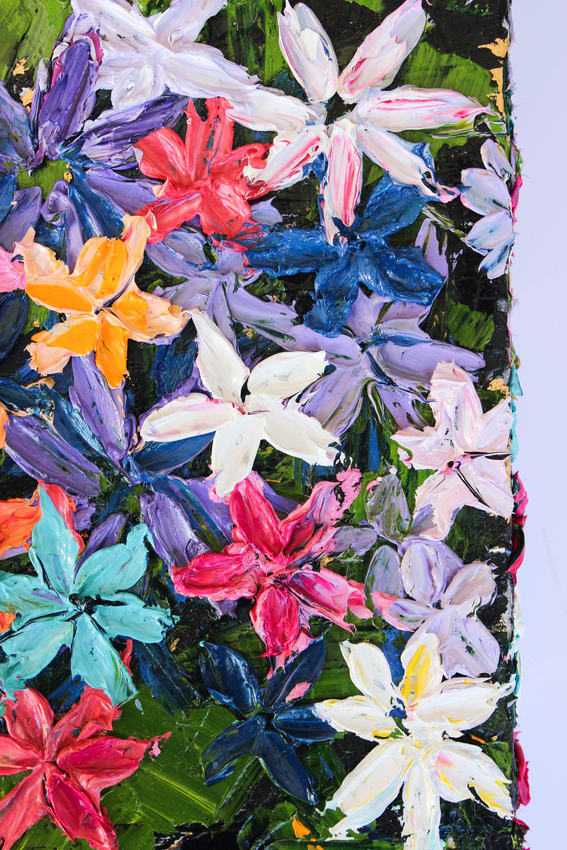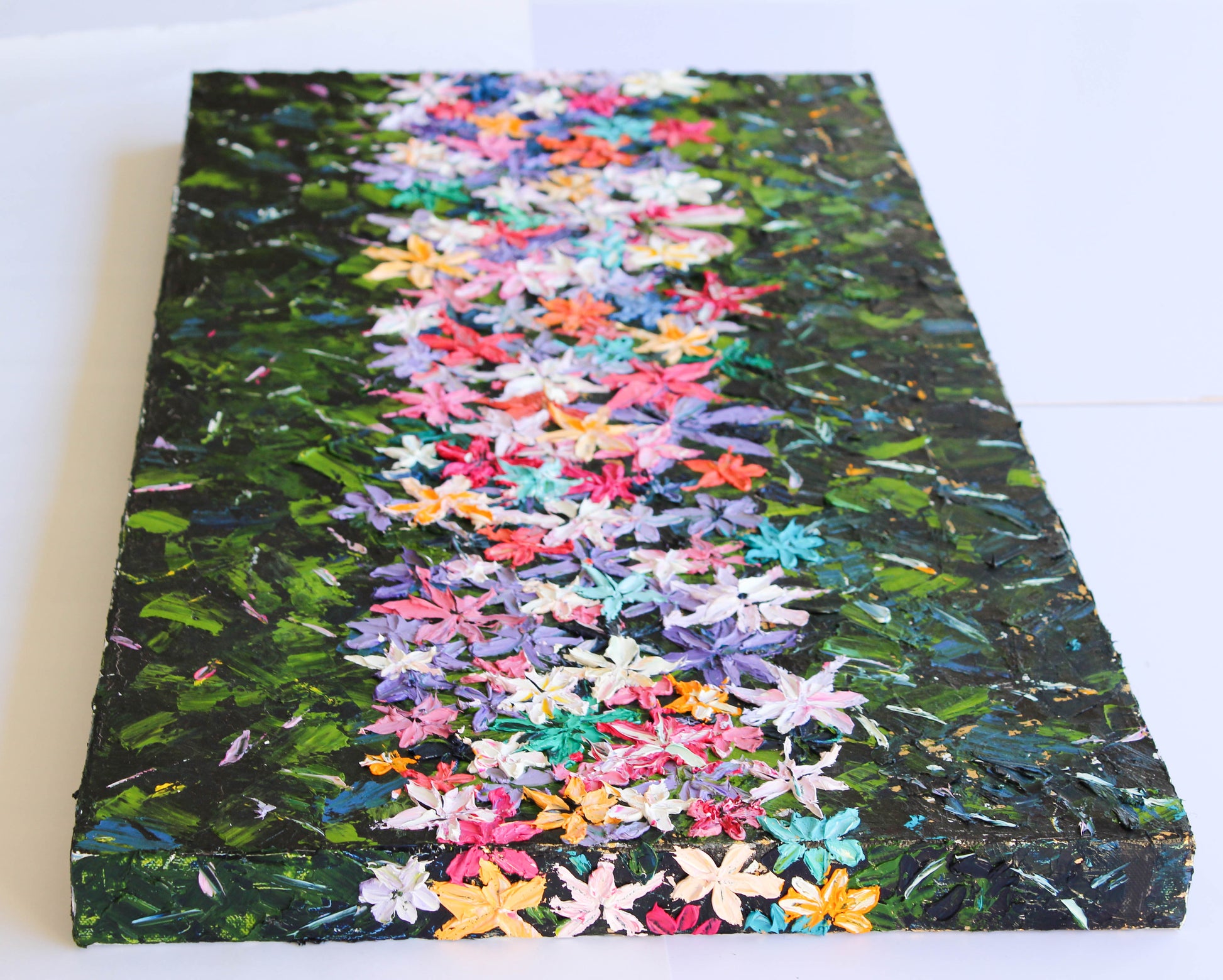 This vibrant painting celebrates nature's beauty through colorful blooming flowers created with my signature palette knife technique. The textured details and lively colors bring joy and energy, making this piece a perfect reminder of spring's magic for any space.